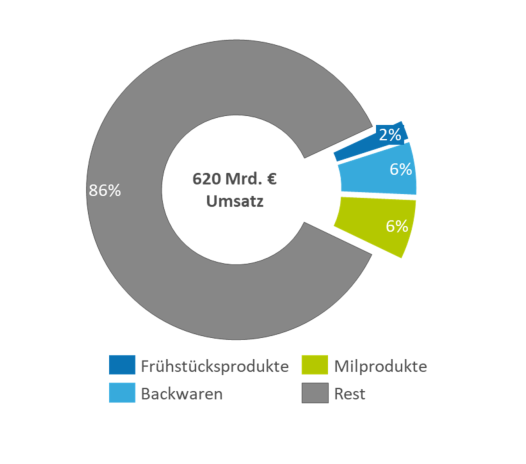 Mit 87,1 Mrd. € Umsatz im Jahr 2017 ergibt sich in Europa für Frühstück einen Marktanteil von rund 14%.